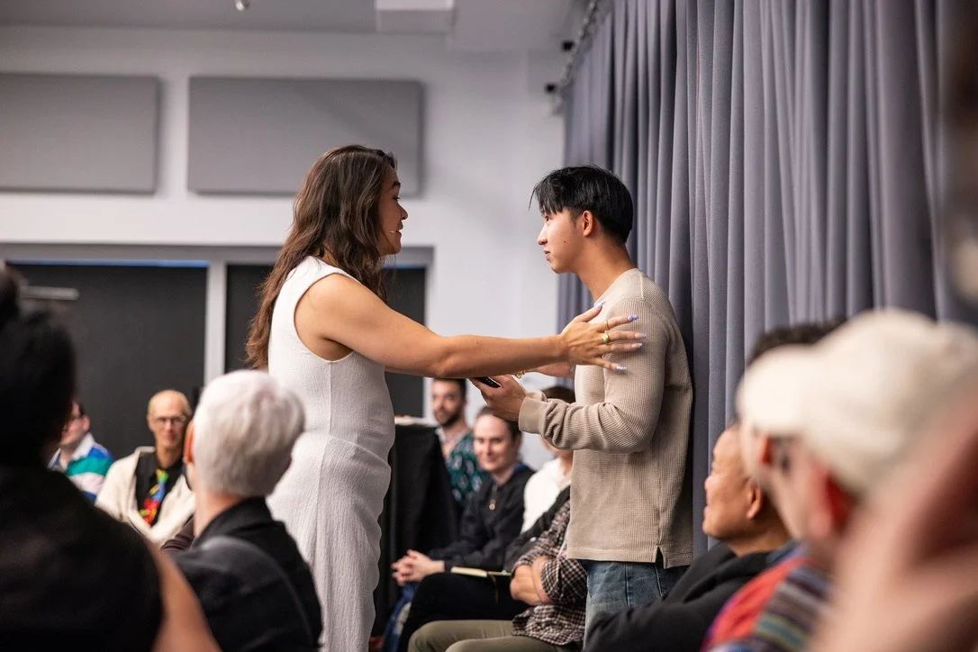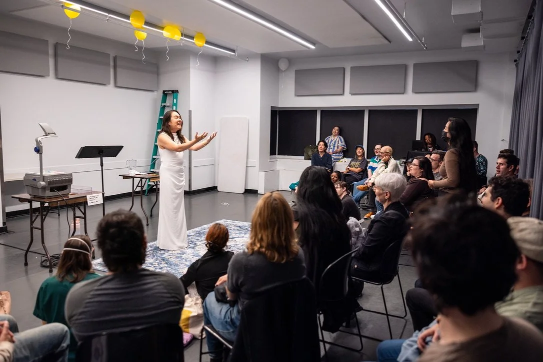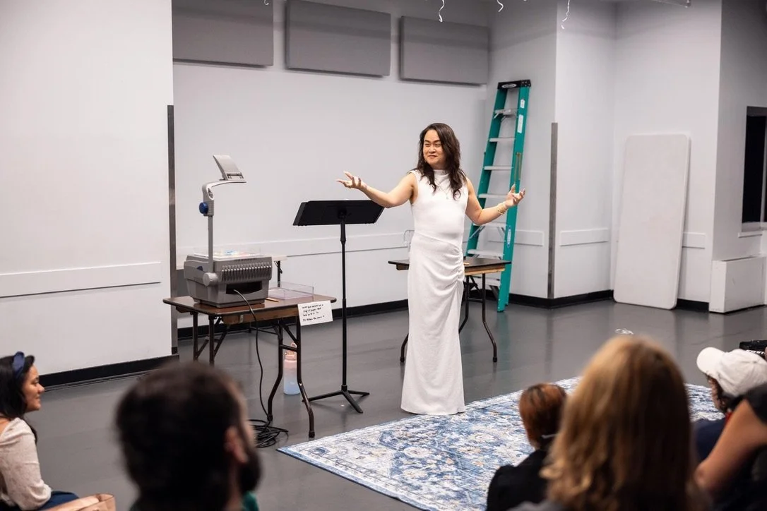 A solo ritual-musical that follows a queer Asian immigrant in the U.S. as they wrestle with inherited legacies and imagine new ones. Blending Chinese mythology, circle singing, and audience call-and-response, the Narrator transforms their search for identity and belonging into the creation of a brand-new myth: an act of collective healing, joy, and defiance.
